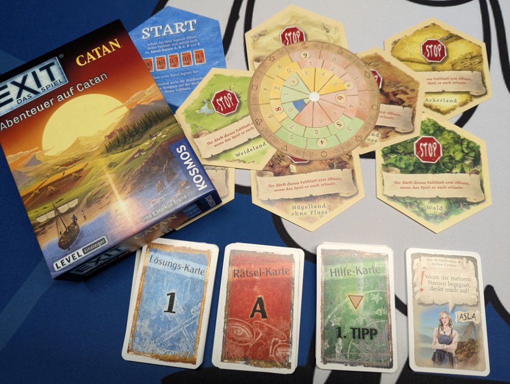 Inka und Markus Brand schaffen es immer wieder mit ihren Exit-Produkten zu überraschen. Auch wenn man denkt, man hat schon alles gesehen und erlebt, schaffen die beiden es, coole Rätsel-Ideen in ihre Spiele einzubauen. Von daher freue ich mich auch noch auf das dreißigste Spiel der Reihe Exit – Das Spiel. Auf 30 Jahre kommt bereits der Klassiker Catan, da liegt es doch nahe diese beiden Serien im Jubiläumsjahr verschmelzen zu lassen.